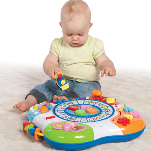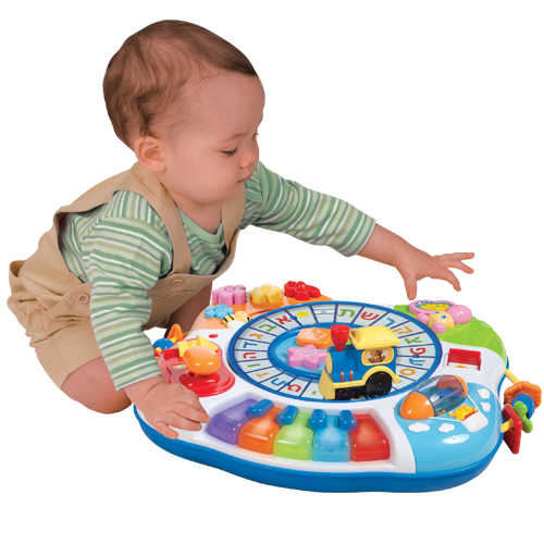שולחן פעילות דובר עברית הכולל שלל פעילויות מהנות ולימודיות לילדיכם. לשולחן 2 מצבים- מצב שולחן ומצב מרכז פעילות על הרצפה. עם קטר רכבת הנוסע על מסילת הא’-ב’, פסנתר עם קלידים מהבהבים, זיהוי חיות, צבעים וצורות, צופר רכבת, ידית הילוכים ואפקטים קוליים משעשעים.מנגן ושר את שיר הא’-ב’ *הניעו את קטר הרכבת על מסילת האותיות *פסנתר עם 5 קלידים מהבהבים *זיהוי חיות צבעים וצורות *צופר רכבת, ידית הילוכים,גלגל מסתובב *דבורה עפה ופרפר פורש כנפיים עם אפקטים קוליים משעשעים *ניתן להפוך את השולחן למשחק רצפה על ידי פירוק הרגליים. *לגילאי 12 חודשים +